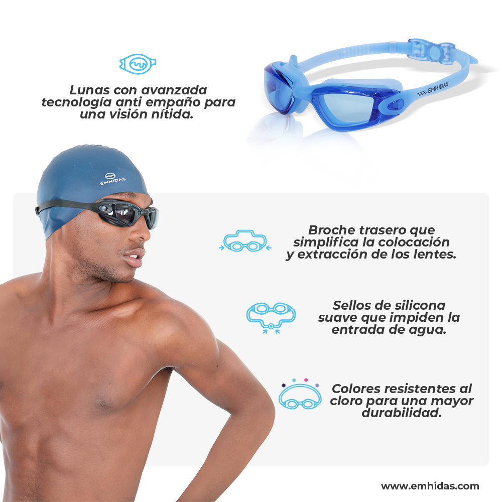 La ropa de baño y los accesorios de E’MHIDAS están diseñados para ofrecer comodidad, durabilidad y un rendimiento óptimo en cada sesión de natación. Sus prendas utilizan tejidos técnicos de secado rápido y alta elasticidad que permiten libertad total de movimiento, reducen la fricción y mantienen un ajuste cómodo incluso en entrenamientos prolongados. A esto se suman accesorios funcionales como lentes con protección UV, gorros ergonómicos y toallas de microfibra, pensados para cuidar la piel y optimizar la experiencia dentro y fuera del agua. Elegir E’MHIDAS es apostar por calidad, confort y una práctica acuática más segura y eficiente.