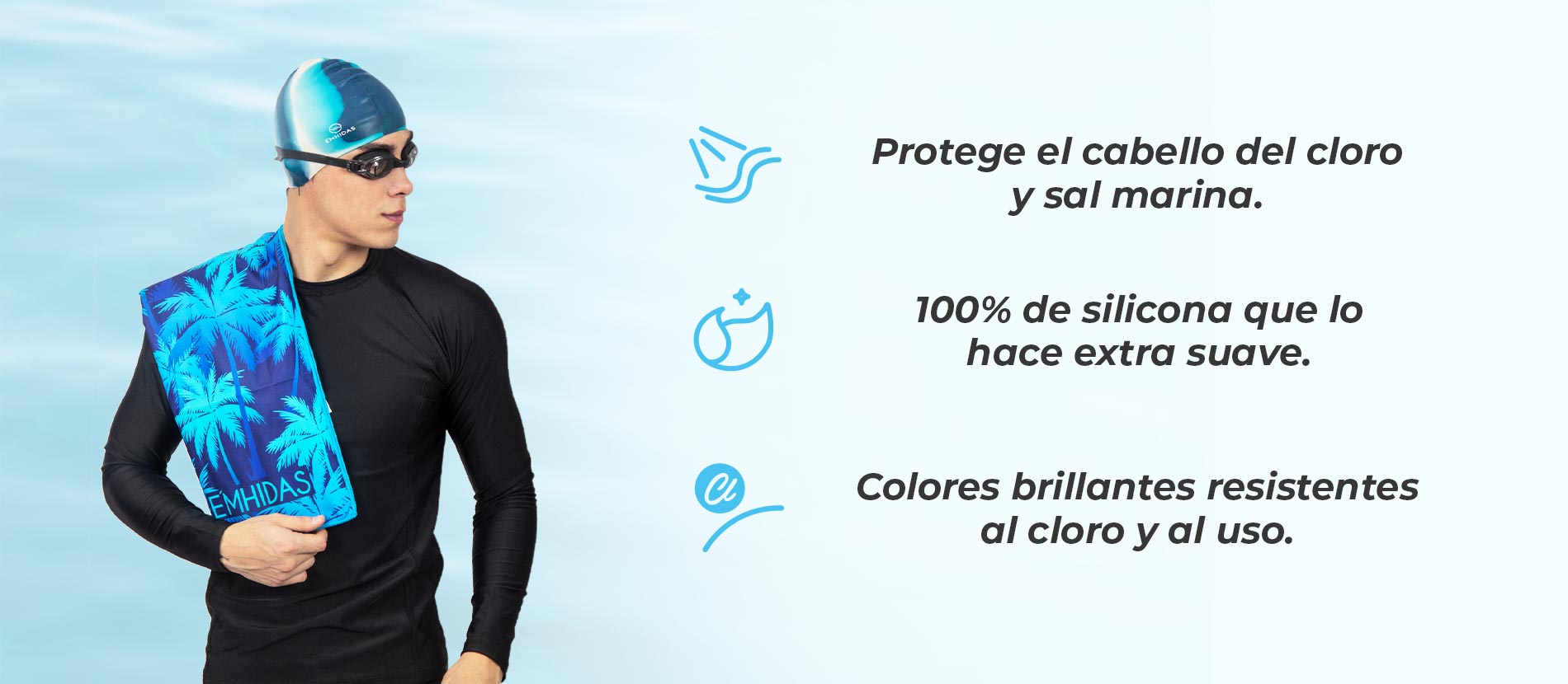 El Gorro de Silicona es perfecto para aquellas personas que buscan cuidar su cabello y mantenerlo seco mientras nadan. La silicona con la que esta hecho este producto te brinda durabilidad y un ajuste cómodo. No permitas que el cloro o la salinidad del agua sea un impedimento para que puedas disfrutar tu rutina en el agua.