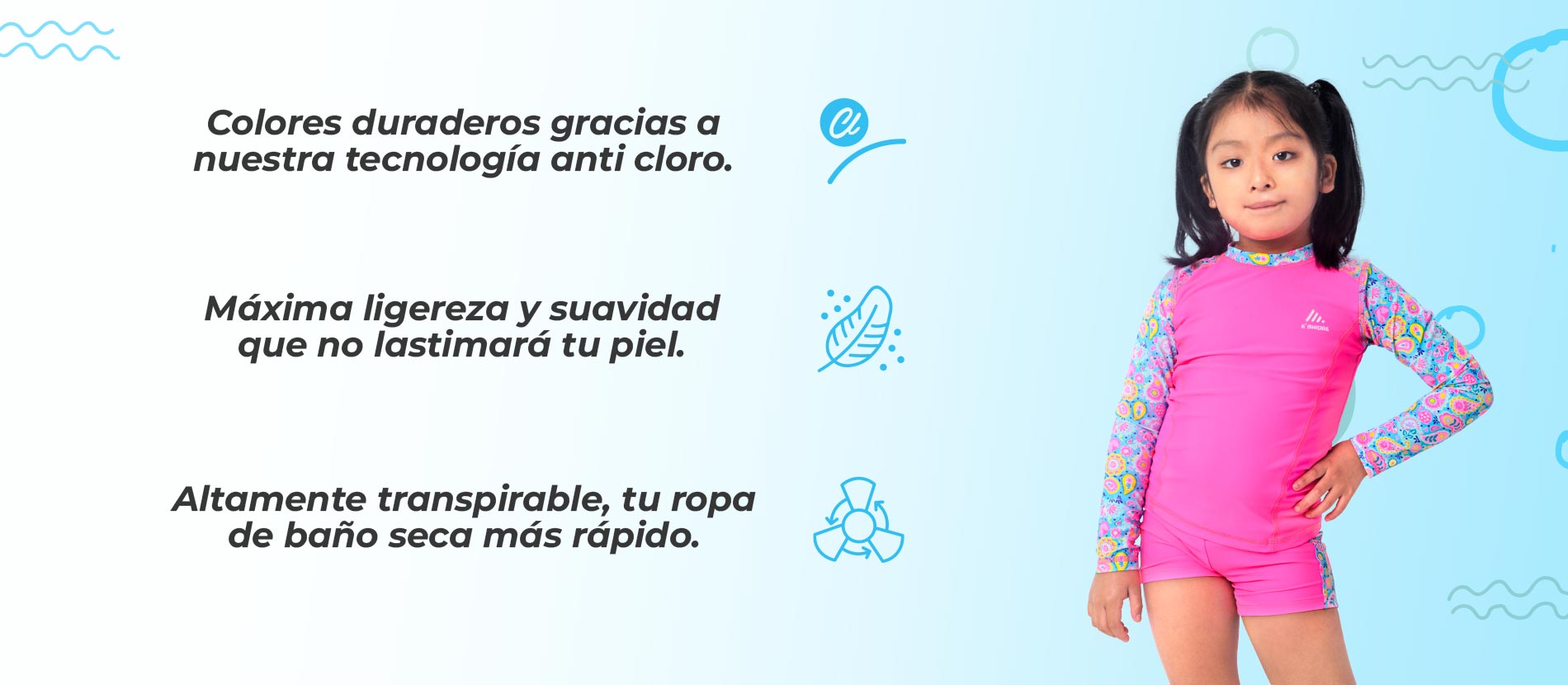 El Olímpico de Baño Esencial ha sido diseñado para que tu pequeña disfrute sus actividades en el agua con total comodidad y libertad de movimiento. Su confección favorece un ajuste cómodo y funcional, permitiendo un uso agradable durante juegos, natación o momentos recreativos, manteniendo una sensación ligera y adecuada para un traje de baño infantil.
