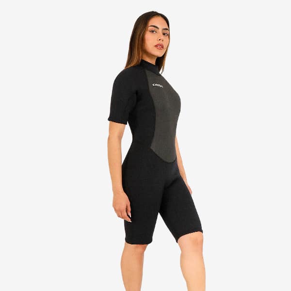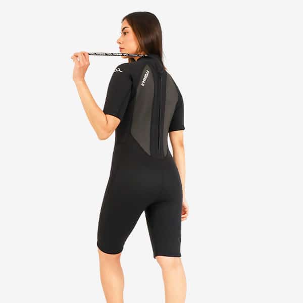 El nuevo Wetsuit de mujer corto HydroFlow con Sharkskin 3/2mm está diseñado especialmente para adaptarse a la anatomía femenina, ofreciendo un ajuste ceñido y cómodo que acompaña cada movimiento dentro del agua. Confeccionado con neopreno Duraflex de 3/2 mm, brinda la combinación perfecta de protección térmica, flexibilidad y ligereza para que disfrutes al máximo tus sesiones en aguas templadas.